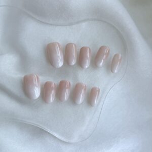 Premium Quality Press On Nails – Blush Nude with Cat-Eye Glow